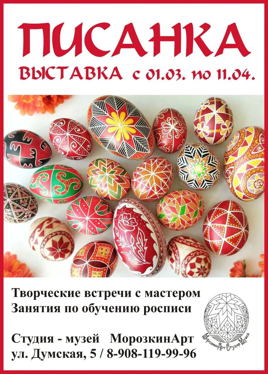 Студия-музей MорозкинАрт (по адресу: ул. Думская, 5 (3-й этаж) приглашает на выставку писанок — расписных яиц.