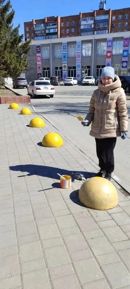 Коллектив Омского Дома Дружбы навёл полный порядок на прилегающей территории: белили бордюры, красили полусферы, убирали прошлогоднюю листву и мусор, подметали тротуары и площадь.