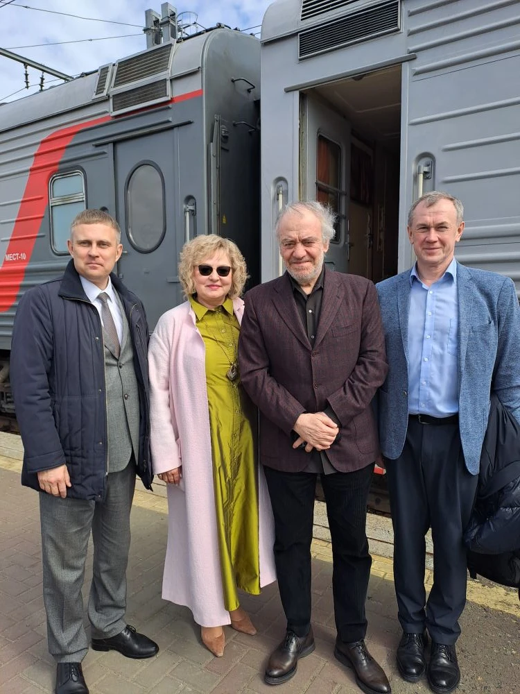 На специальном поезде ХХV Московского Пасхального фестиваля в Омск прибыли артисты Объединенного симфонического оркестра Мариинского и Большого театров. Легендарного дирижера Валерия Гергиева на вокзале встретили министр культуры Омской области Юрий Трофимов и директор Омской филармонии Ирина Лапшина.