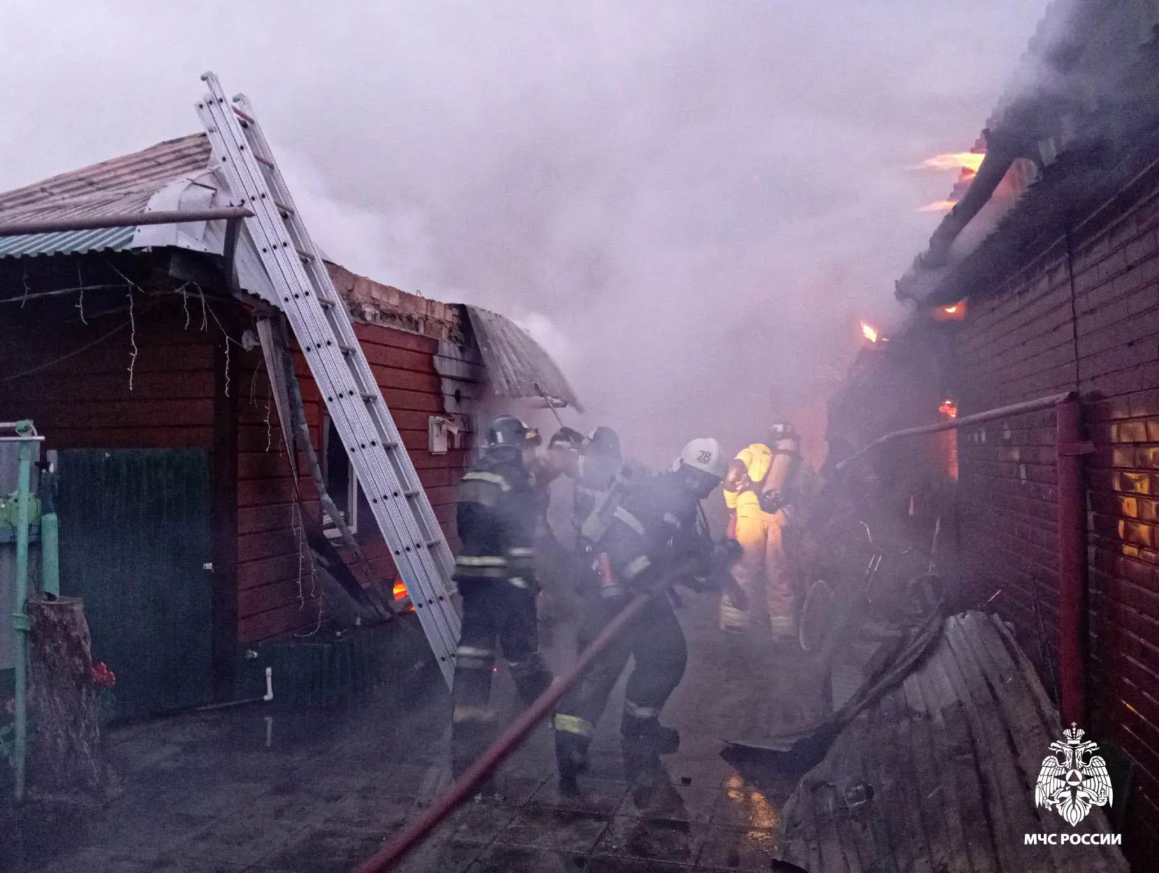 В Черемуховском Ленинского округа горели двухквартирный дом и хозпостройки во дворе.