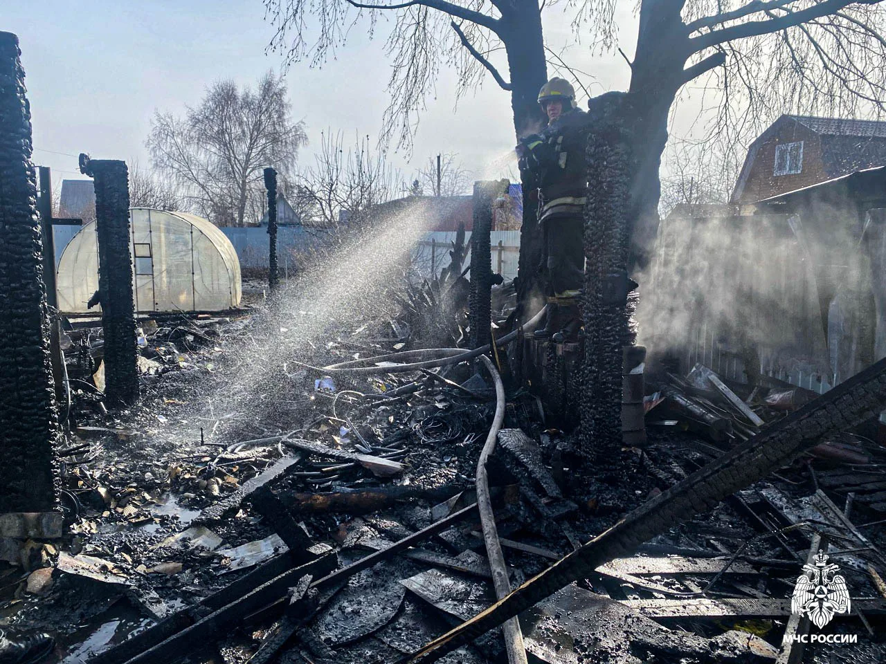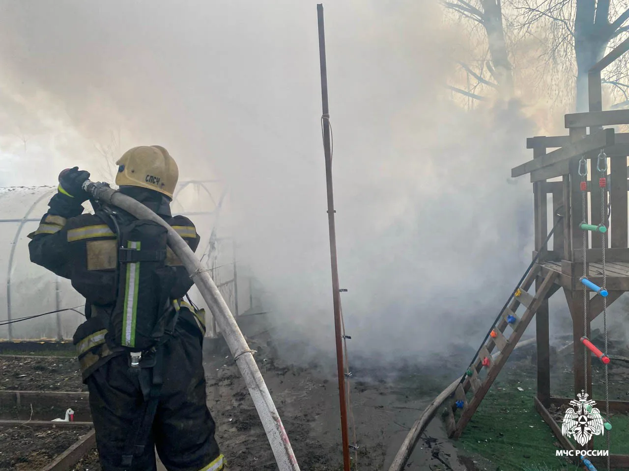 В садоводстве "Птицевод-2" горела хозпостройка, была угроза переходя огня на дом.