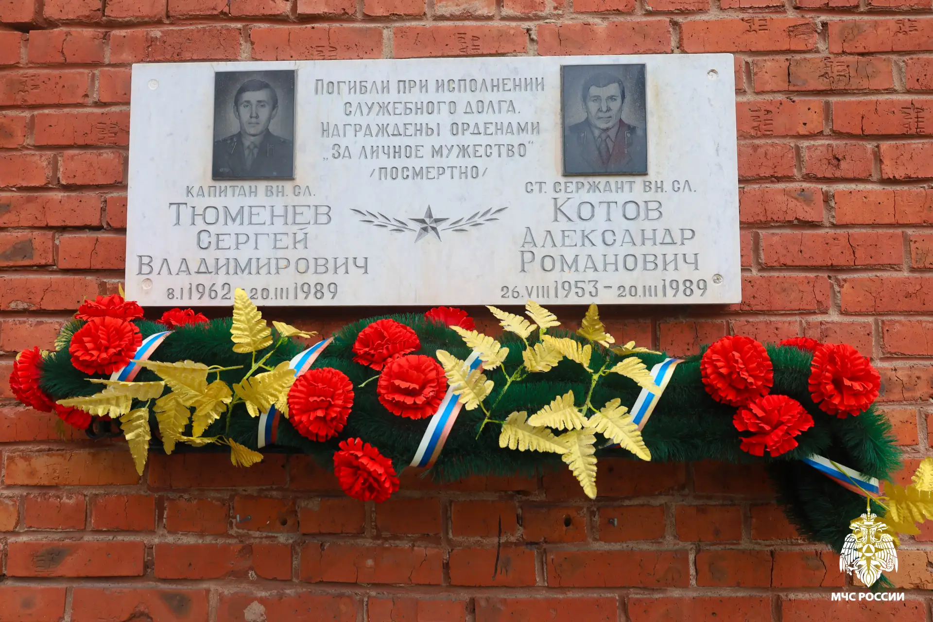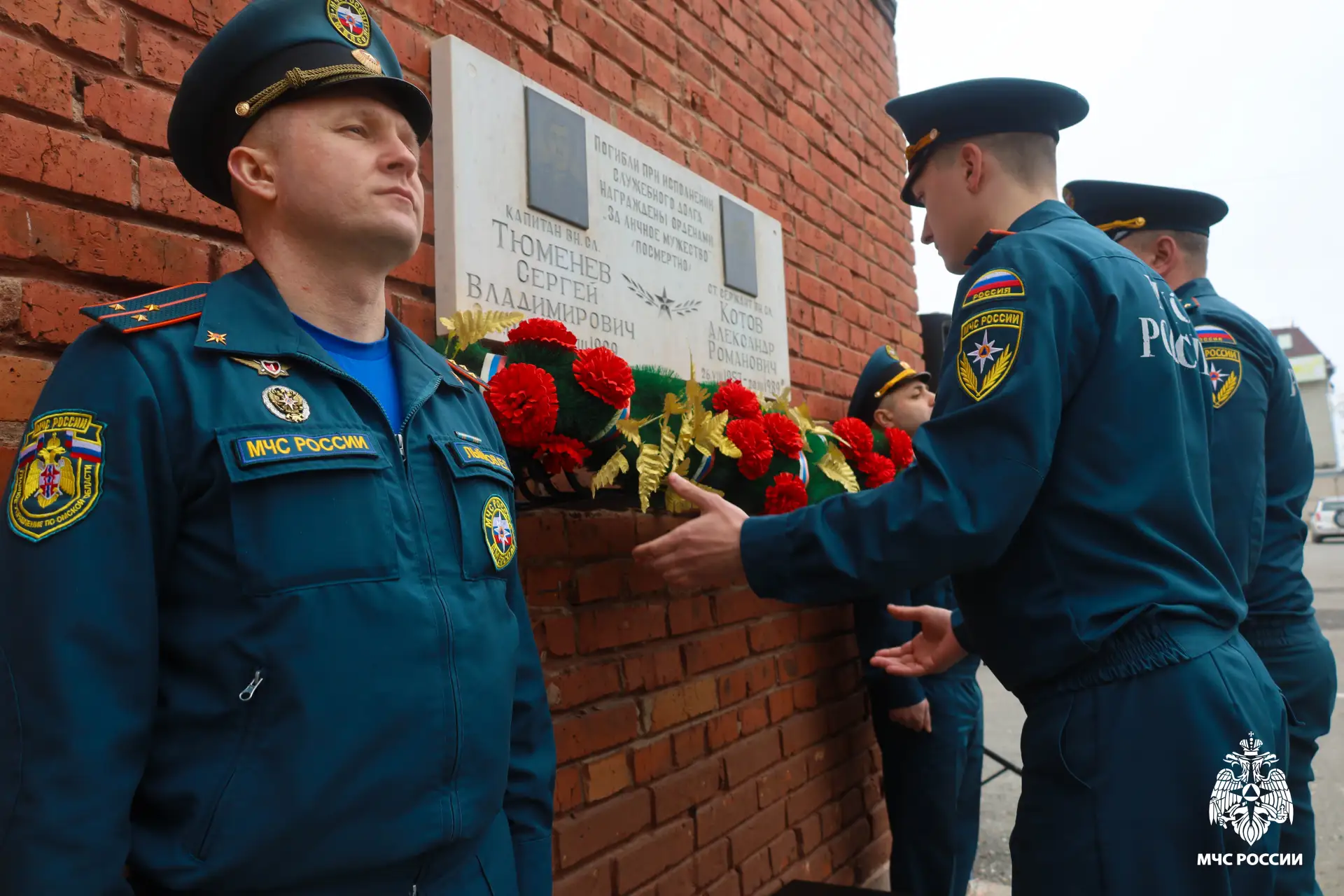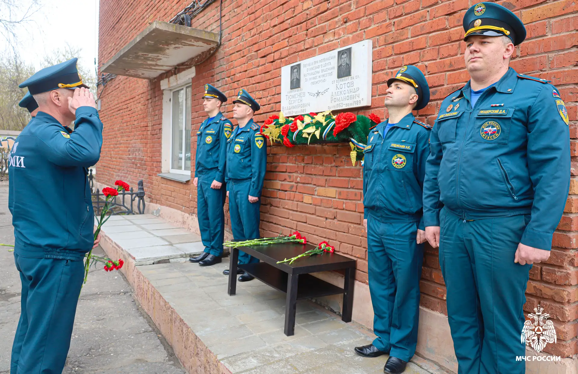 Огнеборцы части и руководящий состав регионального МЧС России торжественно возложили венок с цветами, почтив память Сергея Тюменева и Александра Котова. В 1989 году пожарные погибли под завалами в очаге крупного пожара в санатории «Автомобилист», когда перекрытие верхнего этажа рухнуло от высокой температуры. Указом Президента оба героя были награждены Орденом «За личное мужество» (посмертно).