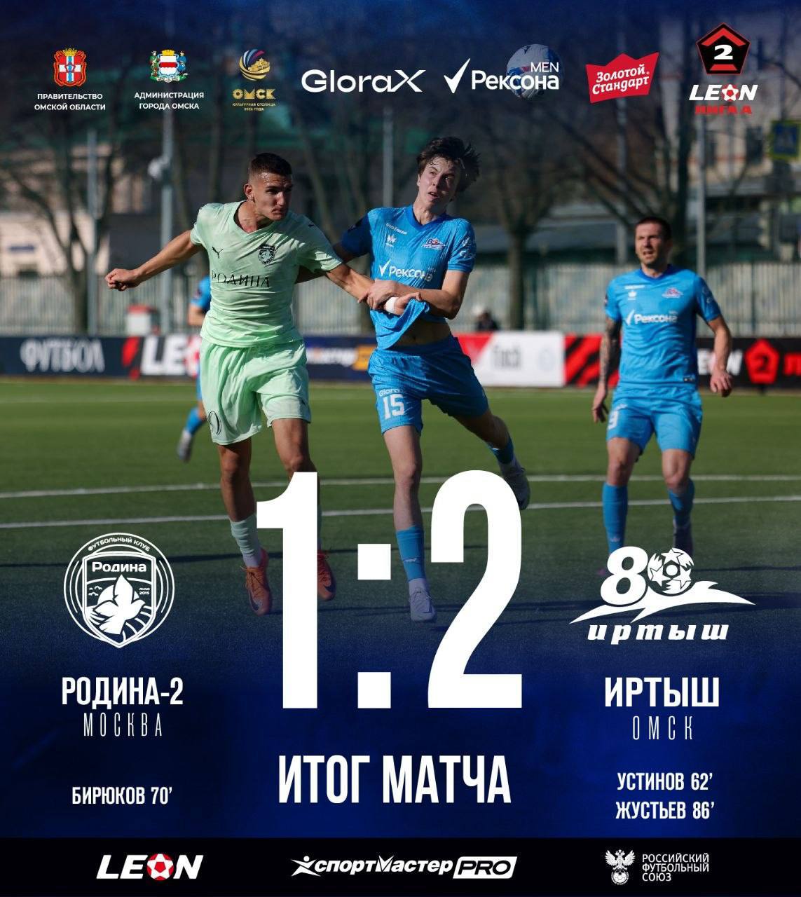 Сегодня омская команда сыграла на выезде с московским клубом «Родина-2». В истории встреч с «Родиной-2» омский «Иртыш» потерпел 4 поражения, однако сегодня эта цепочка прервалась. Наша команда одержала победу со счетом 2:1.