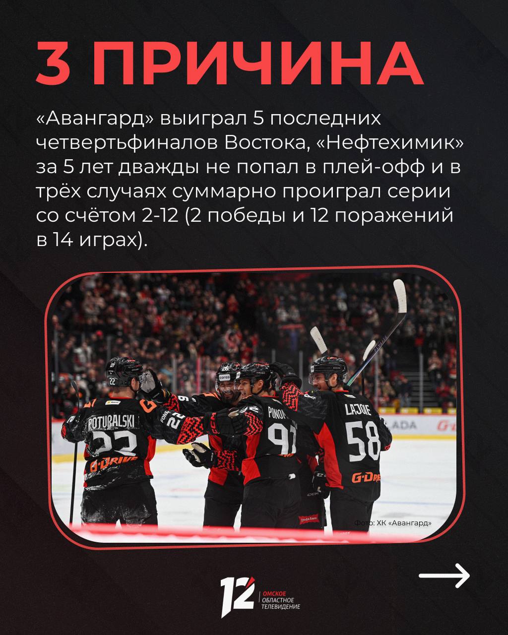 «Авангард» на домашнем льду встретится с «Нефтехимиком» в плей-офф