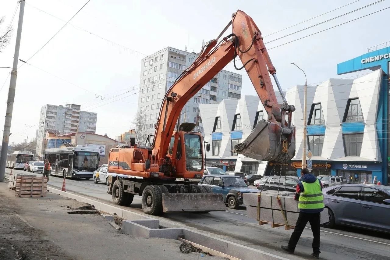 На улице Красный Путь дорожники закончили демонтаж старого бордюра и приступили к установке нового.