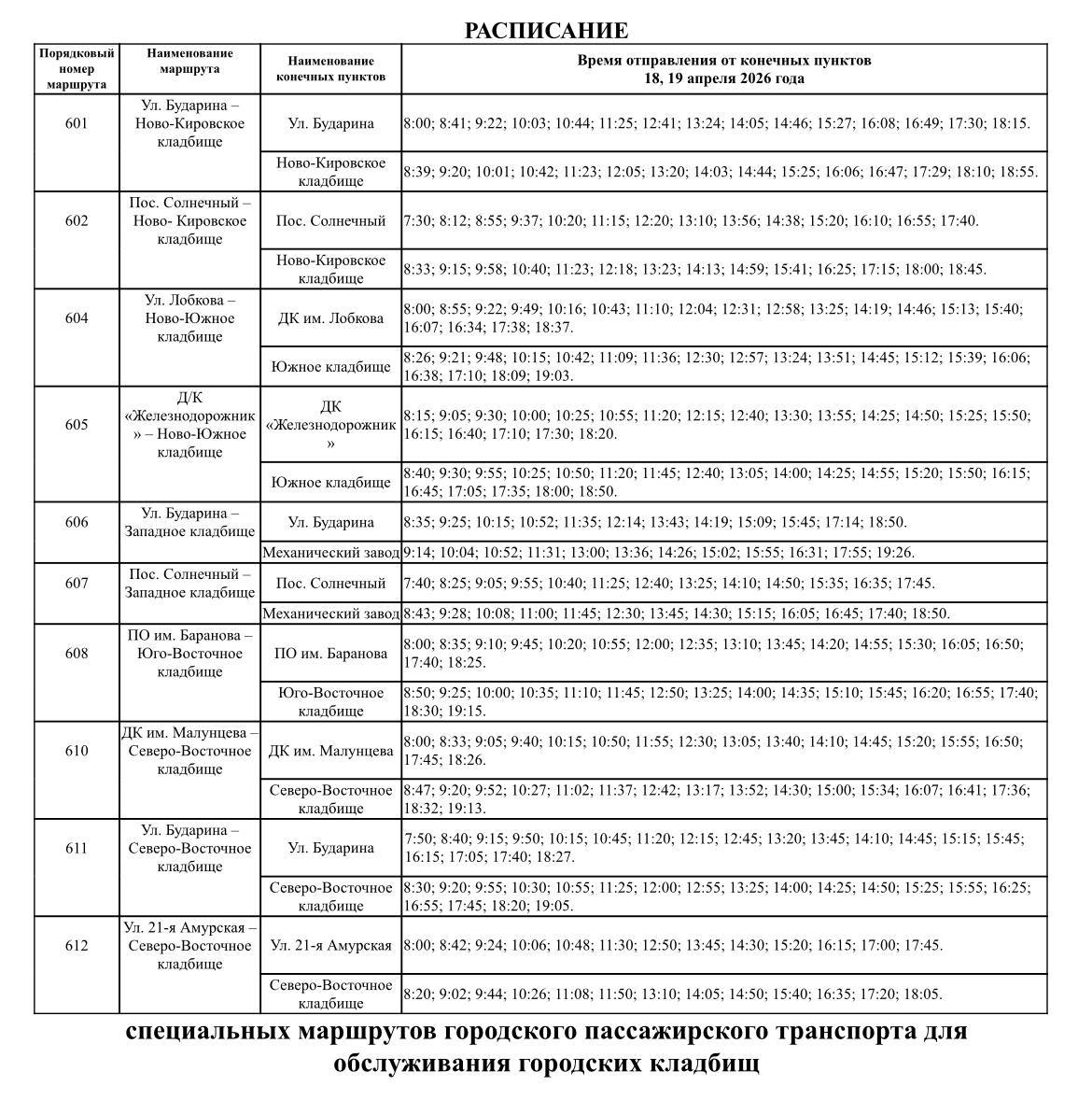 • 21 апреля (Радоница): Количество транспорта увеличат до 119 единиц. Автобусы будут работать до 20:00 и отправляться по мере заполнения.
