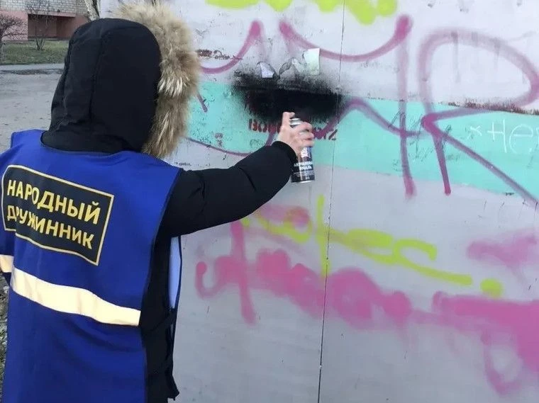 Омские дружинники провели акцию по закрашиванию рекламы запрещенных веществ в Ленинском округе