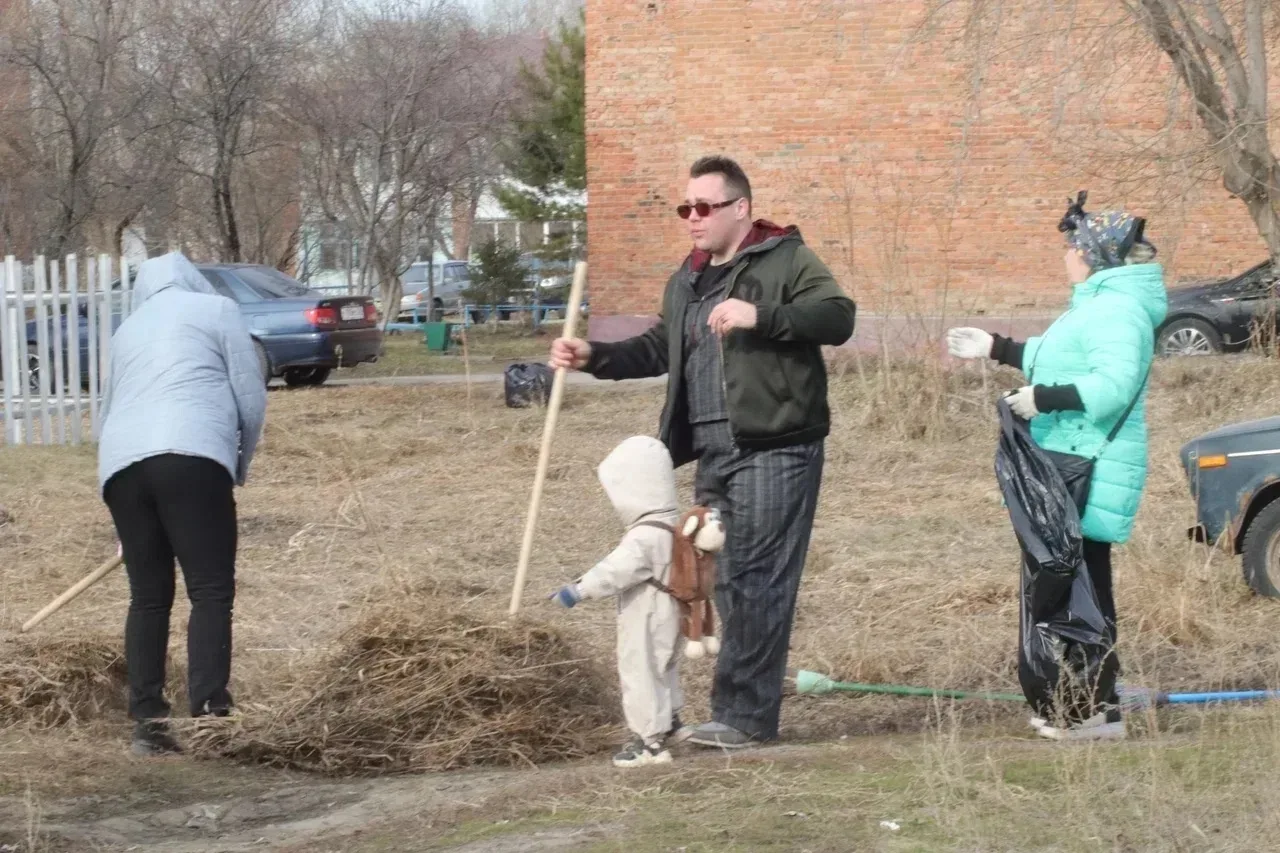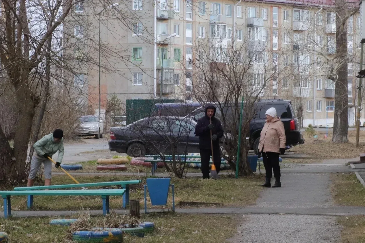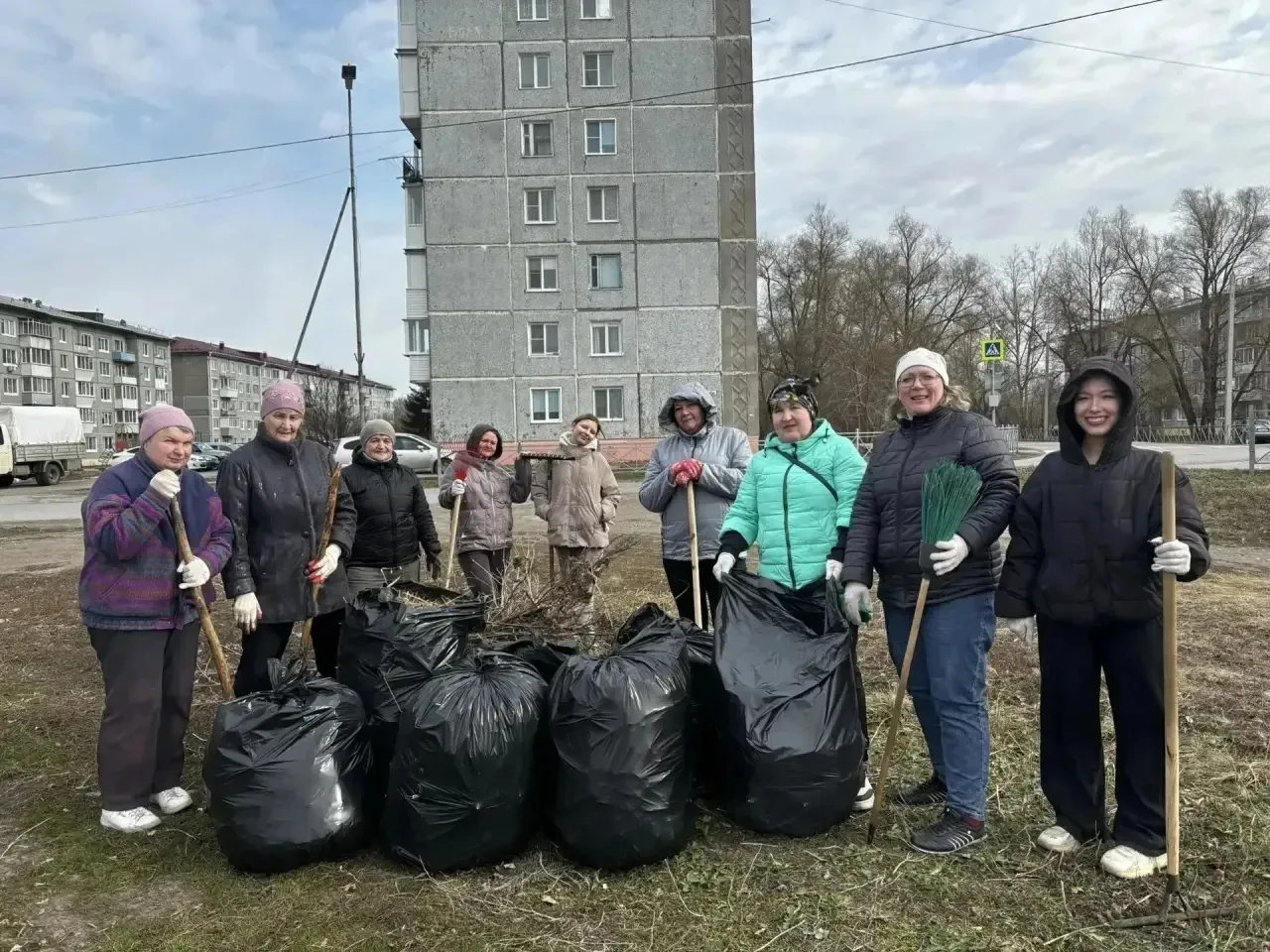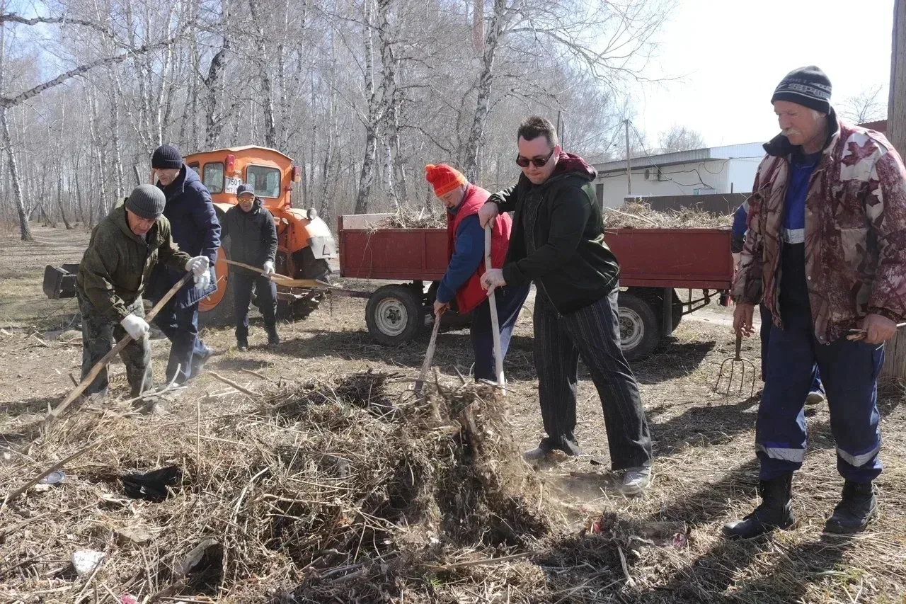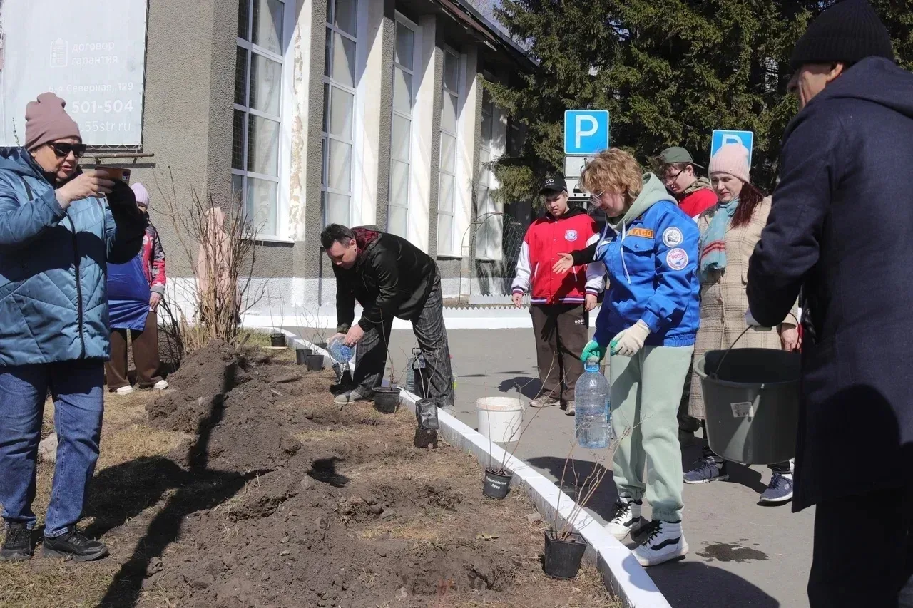 Местные жители провели уборку территорий, вместе со студентами ОмГАУ высадили саженцы вечнозеленого кустарника у Дворца Культуры им. В.Е Часницкого.