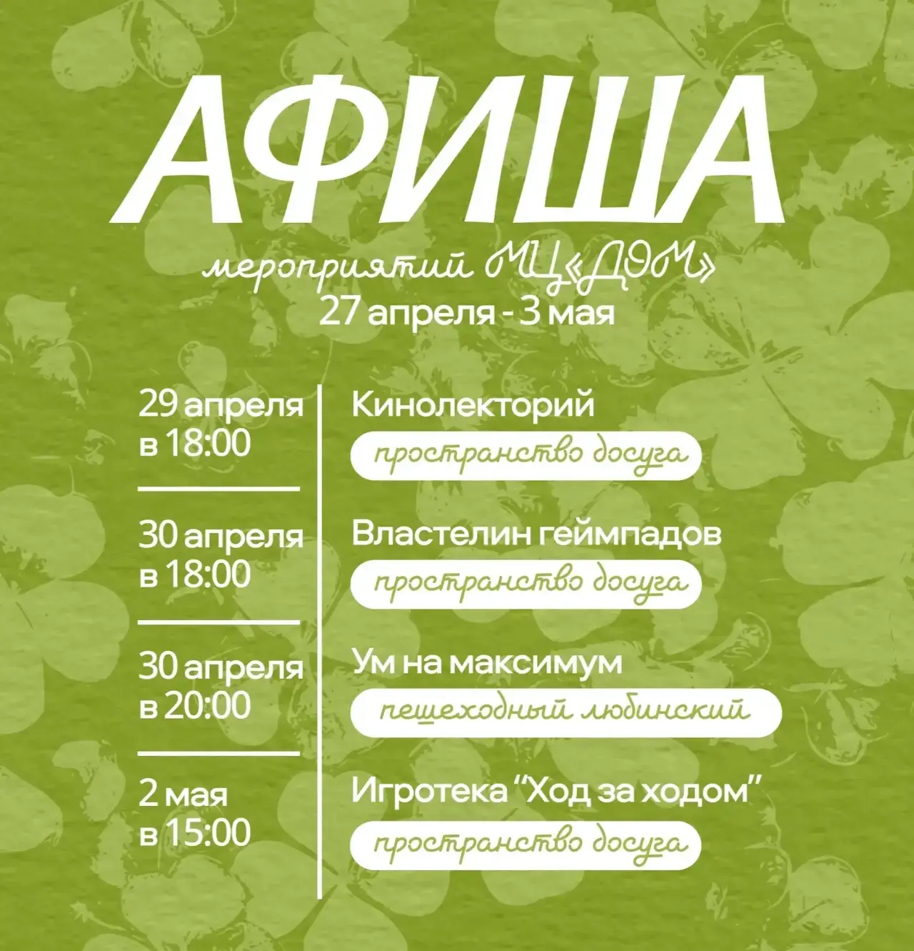 Выбирай то, что по душе и присоединяйся! Подробности — в афишах