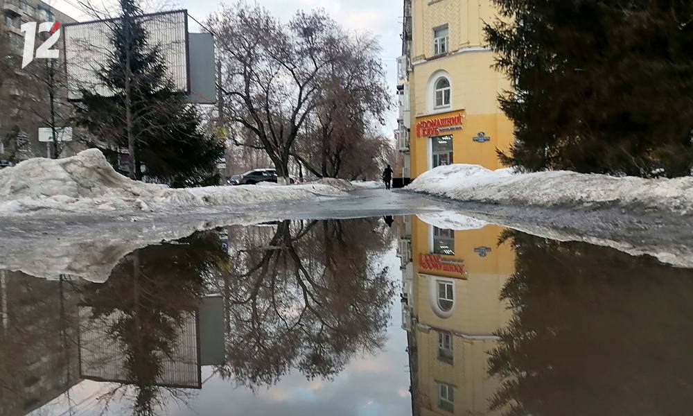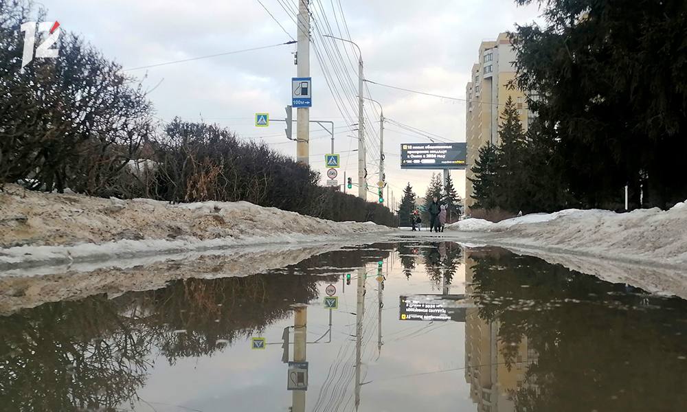 Весна в разгаре, снег тает, и город превращается в сеть каналов и рек. Лужи повсюду, но и в этом есть своя красота.