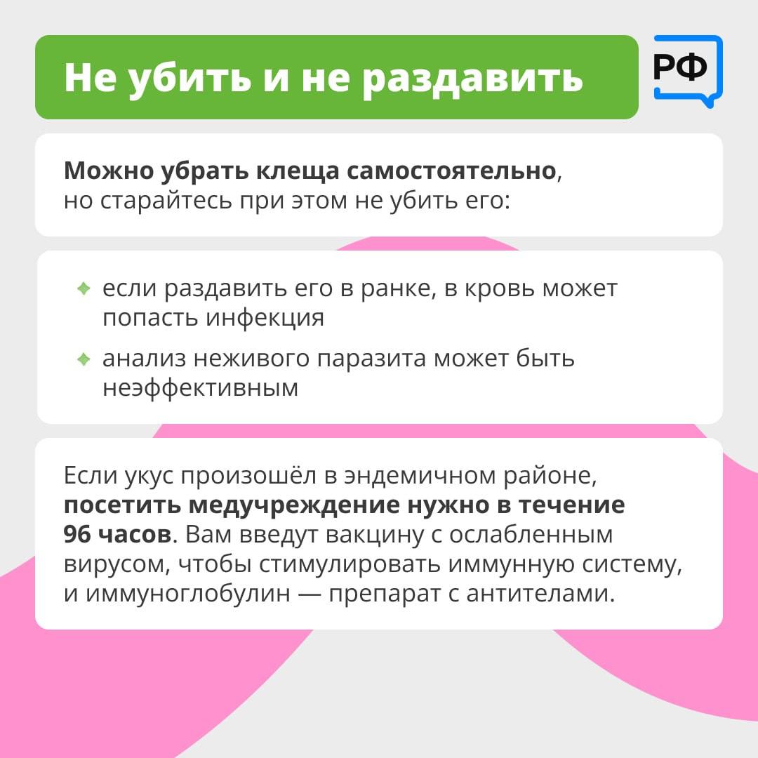 Специалисты напоминают правила безопасности: при выезде на природу регулярно осматривайте себя и близких, выезжайте только в закрытой одежде, желательно светлых оттенков, а также не забывайте про защитные средства.