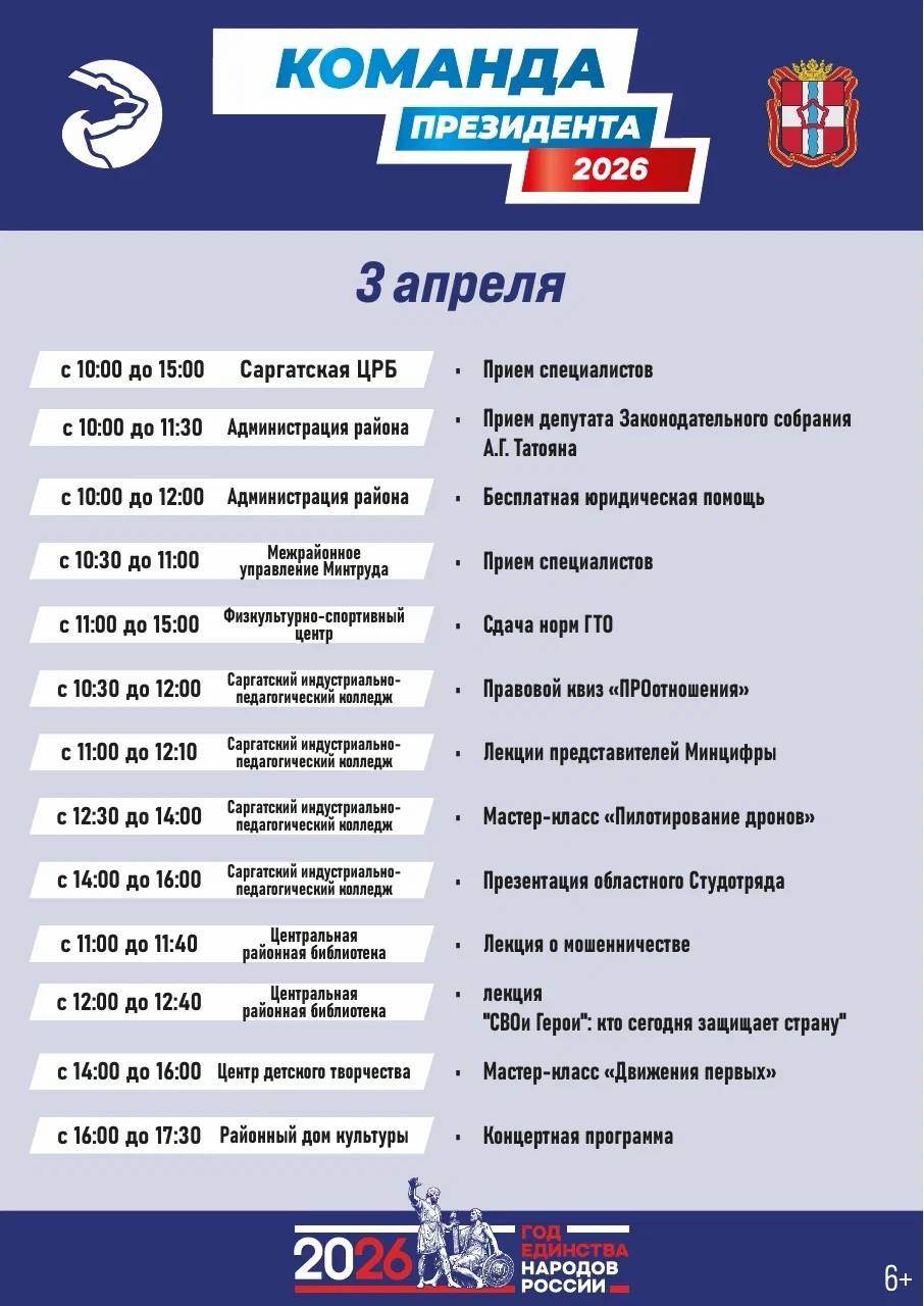 Публикую подробную программу пребывания «Команды Президента» в Саргатском районе