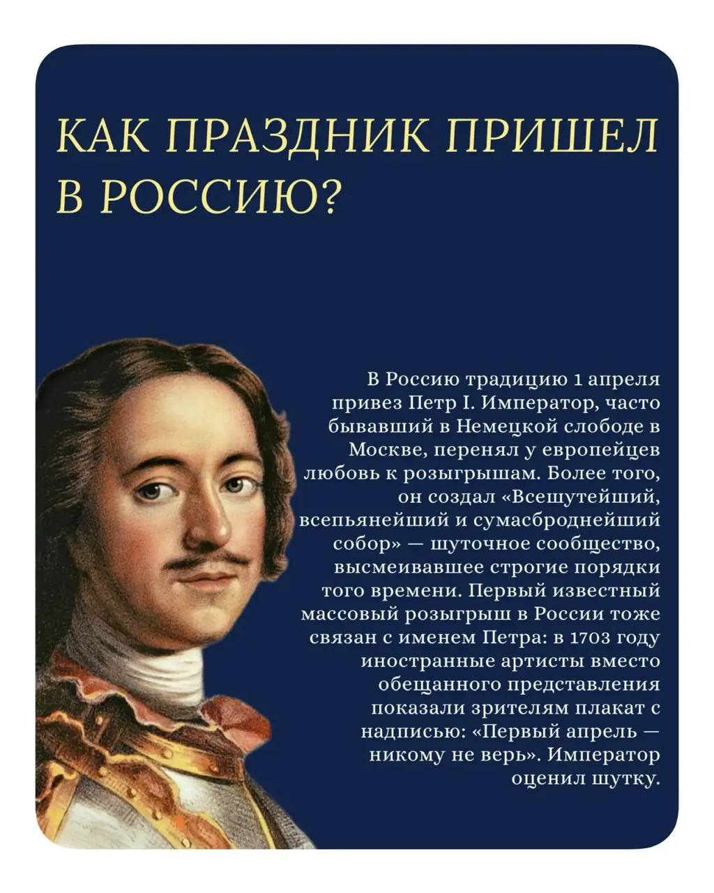 Привычка разыгрывать друзей первого апреля старше, чем кажется. В России этот день стал «веселым» благодаря Петру I.