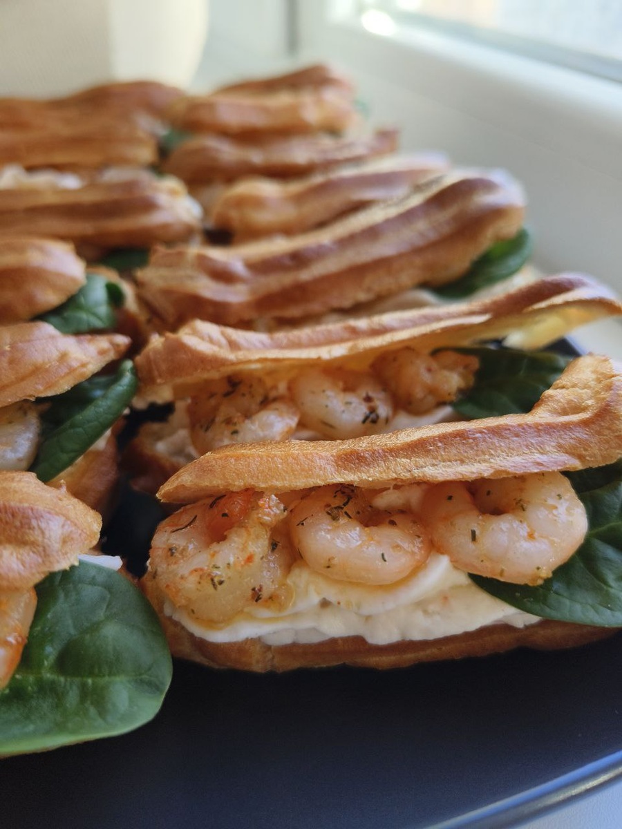 Представляем вашему вниманию совершенно новую интерпретацию классических профитролей, превращённых в оригинальную закуску! Вместо сладких угощений, которые привычно наполняют эти хрустящие корзиночки, сегодня на повестке дня — солёный и пикантный вариант с креветками и сыром.