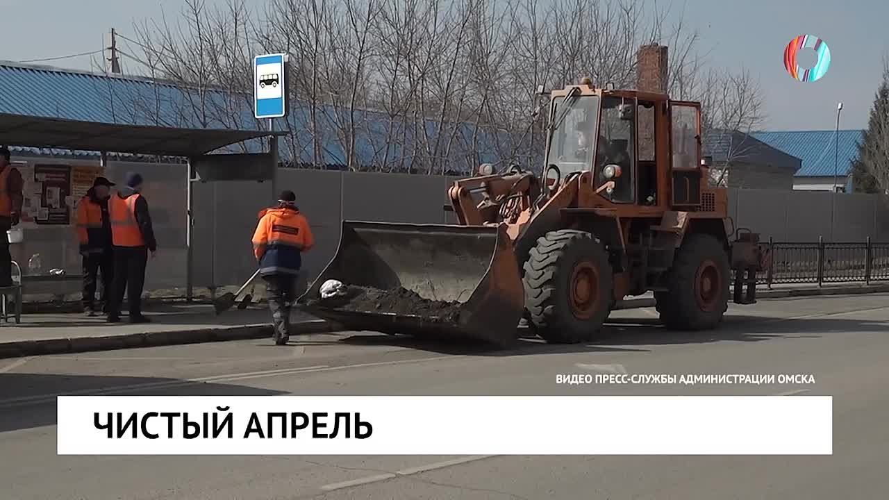 Омск приводят в порядок. Рабочие отмывают бордюры и ограждения. Ведут ремонт там, где проезжая часть совсем разрушилась после зимы.
