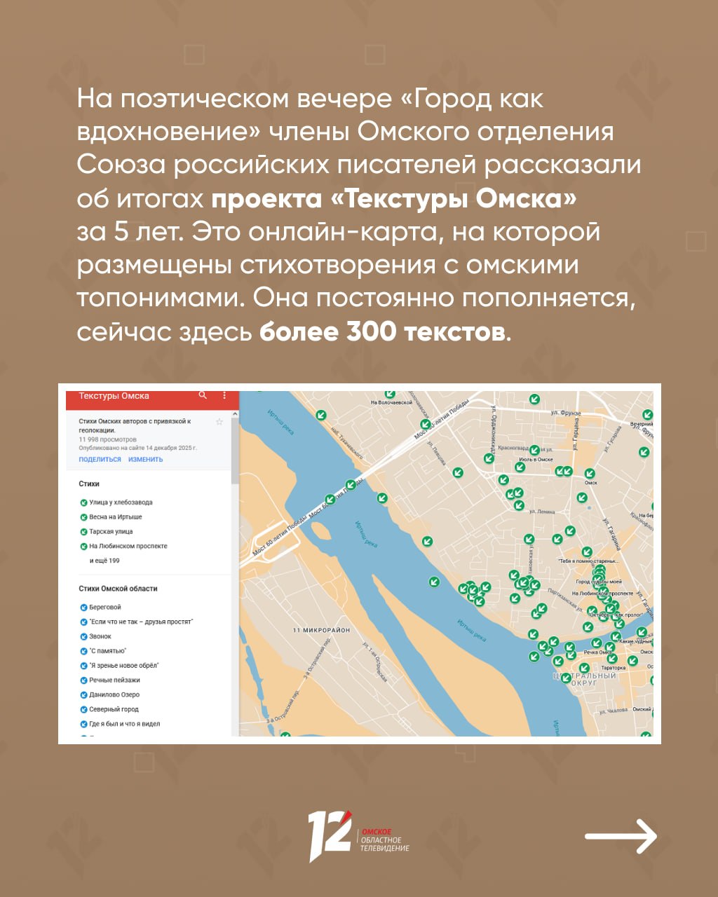 На нём члены Союза российских писателей не только прочли стихи, но и представили жителям Культурной столицы интерактивный литературный проект «Текстуры Омска».