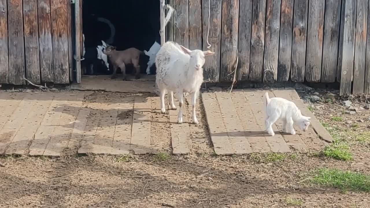 Утро в Большереченском зоопарке начинается с озорной прогулки юных козлят