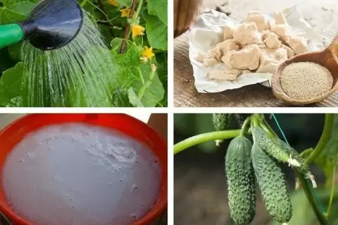 Для огурцов необходимо смешать 1 литр теплой воды с 10 г сухих дрожжей и 1/3 стакана древесной золы. Эту смесь оставляют настаиваться на неделю, а затем поливают под корни: по 1 литру на куст. Если нужно усилить рассаду, достаточно 200 мл под каждое растение. Подкормку следует проводить за неделю до высадки, после — через неделю и повторно на стадии формирования завязей, что способствует увеличению срока плодоношения.