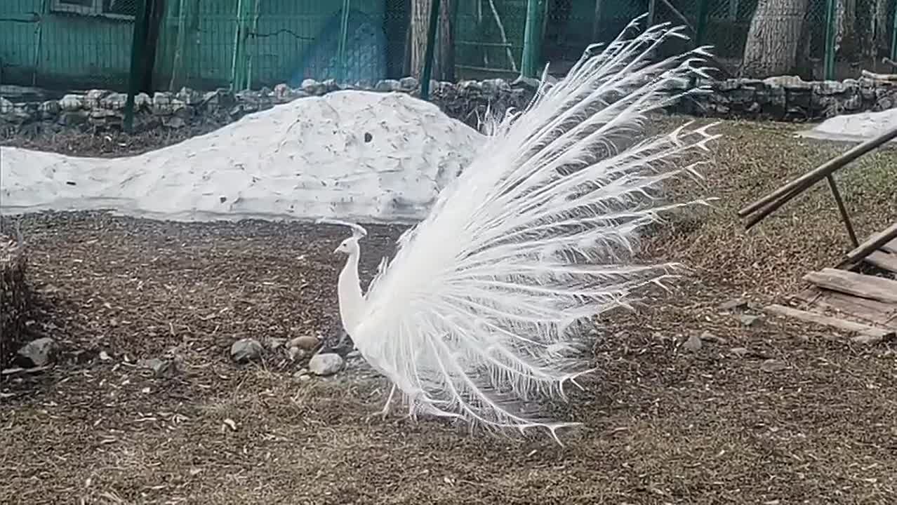 Павлин в Большереченском зоопарке устроил эффектное шоу