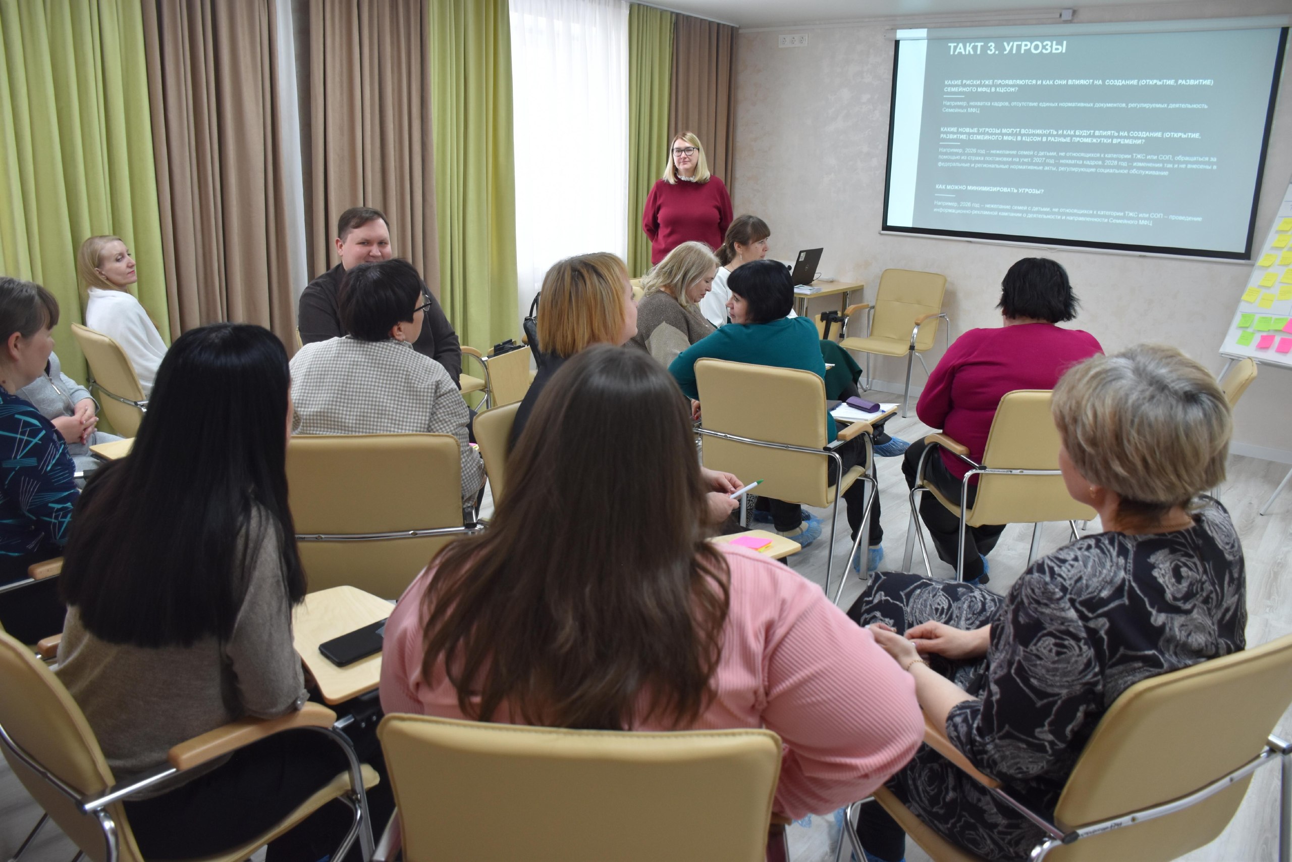В рамках обучения заместитель руководителя Центра социальной помощи семье и детям Наталья Самбур представила практический опыт работы Семейного МФЦ и рассказала о межведомственном взаимодействии, современных подходах к организации помощи семьям.
