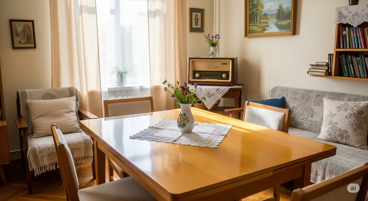 - Меньше вещей — больше уюта: Каждая вещь в доме имела свою ценность, и от этого возникала необходимость бережного ухода. Сервизы и шторы покупались с умом, а одежда часто штопалась, что способствовало регулярному вниманию к чистоте.