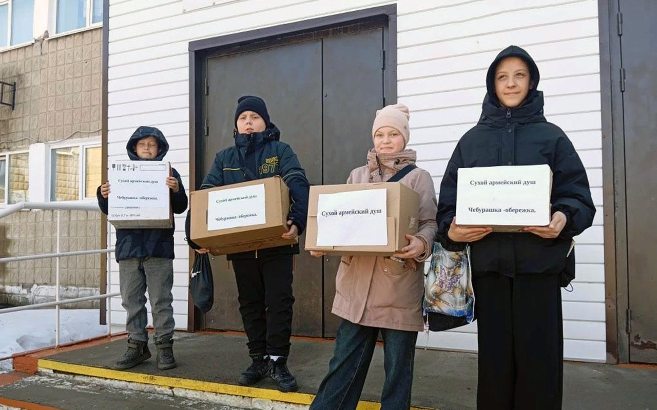 Омские школьники отправили бойцам самодельных Чебурашек и сотни упаковок сухого душа
