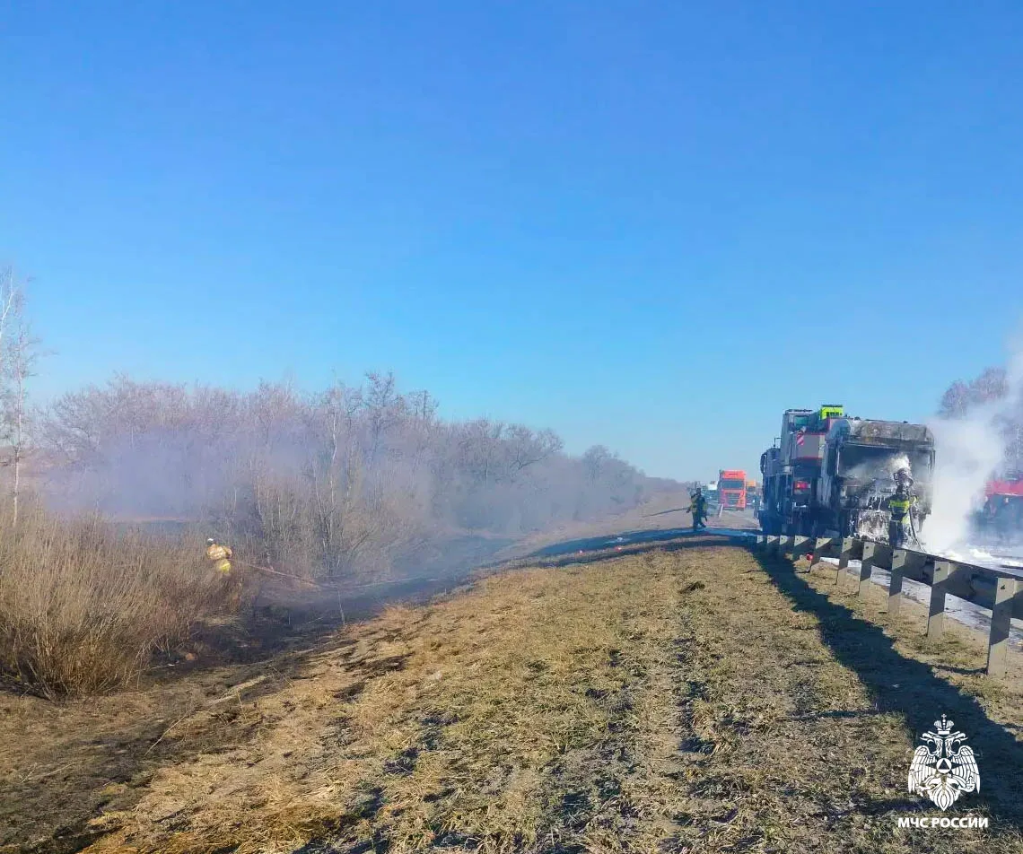 На момент прибытия пожарных горел моторный отсек, салон автомобиля и трава.