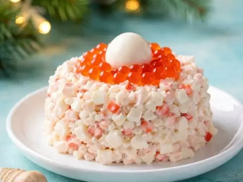 Ждет вашего внимания и другой рецепт салата — Снежная подкова, в которой икры нет, но она не менее вкусная. Подробности можно найти по ссылке ниже для приготовления по индивидуальным предпочтениям.