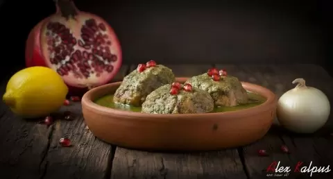 - Создание соуса: На той же сковороде обжарьте мелко нарезанный лук до мягкости. Затем в блендере соедините лук, куркуму, молотые орехи и гранатовый сок, взбив до однородности.