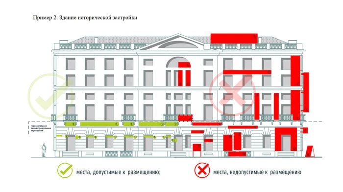 Новые правила детально регламентируют все: от высоты фасадных вывесок (строго 30 см) до цвета шрифта на остеклении (допускается только белый). Под запрет попали мерцающая подсветка, перекрытие оконных проемов баннерами и хаотичное размещение табличек у входов. Единые требования вводятся для обеспечения благоустройства и улучшения архитектурно-художественного облика города.
