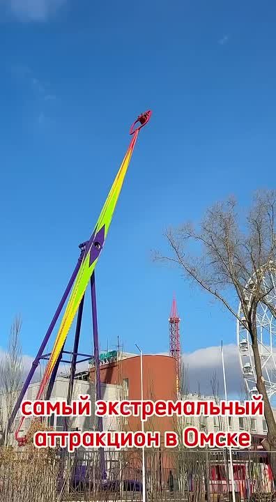 В парке закончили установку огромного маятника. Его высота достигает 40 метров, а во время движения он разгоняется до 100 км/ч и делает полный оборот вокруг своей оси.