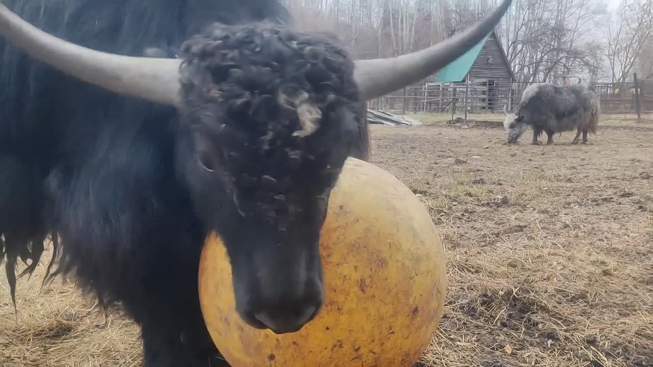 Крепкие рога, недюжинная сила и характер чувствуются в каждом движении. Гром с азартом бодает мяч и не подпускает к нему даже родную сестру. В такой простой игре проявляется его молодецкая удаль и закладывается основа силы и выносливости.