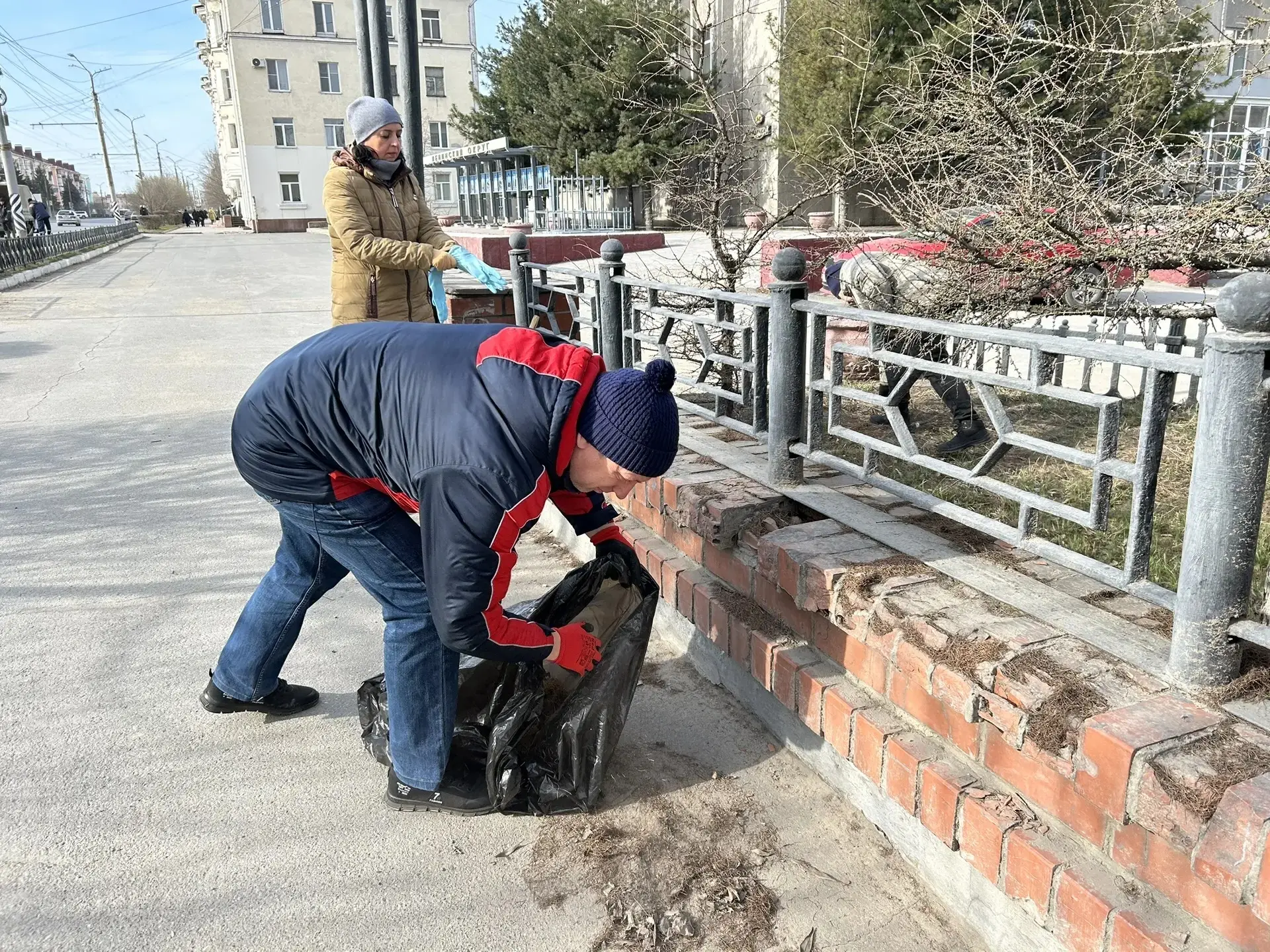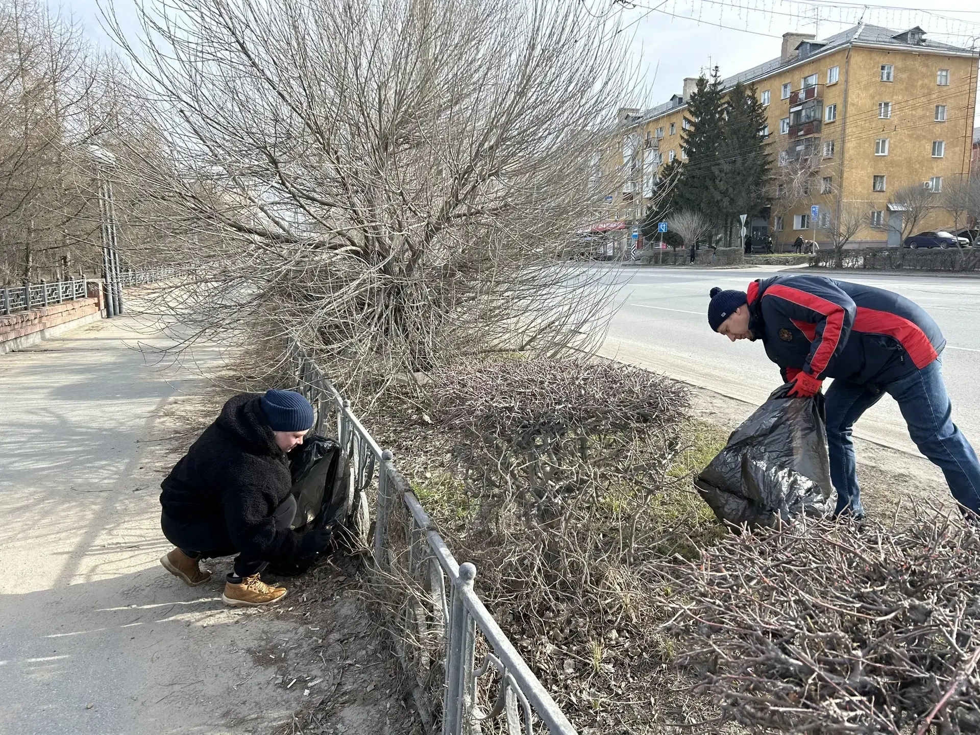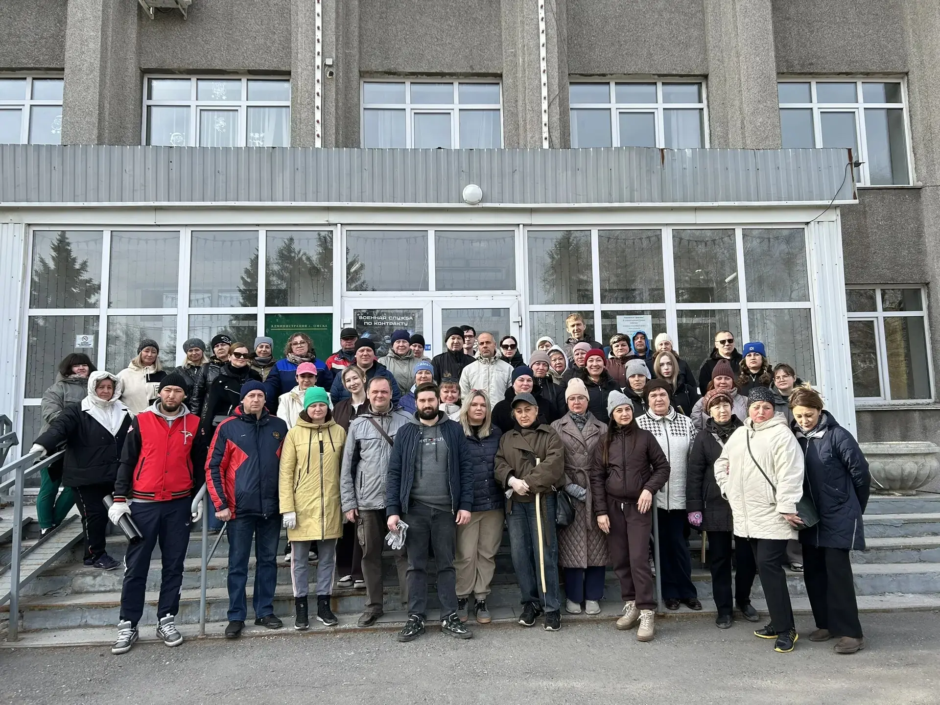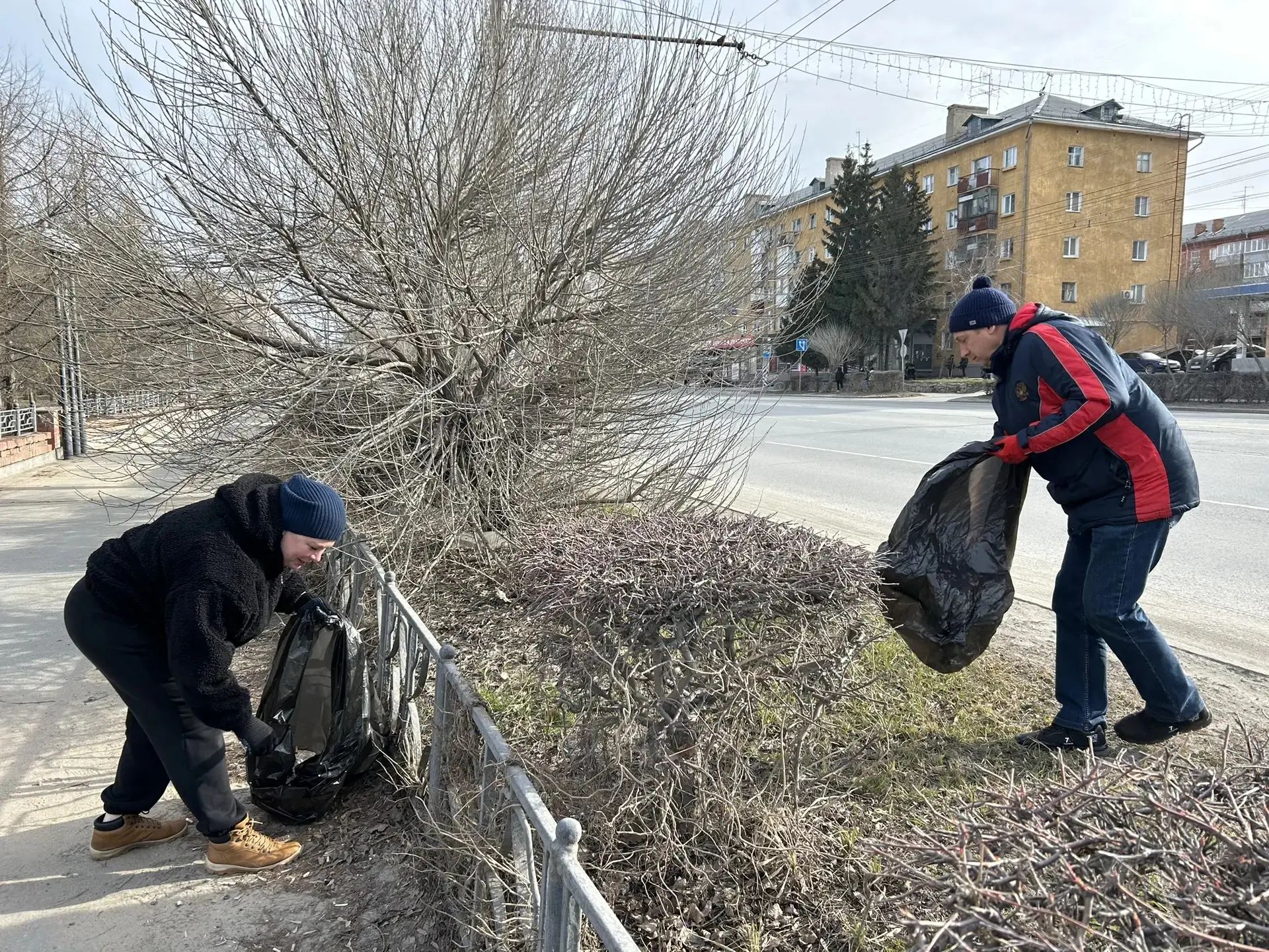 По улице Котельникова уборку выполняли сотрудники одного из омских банков.