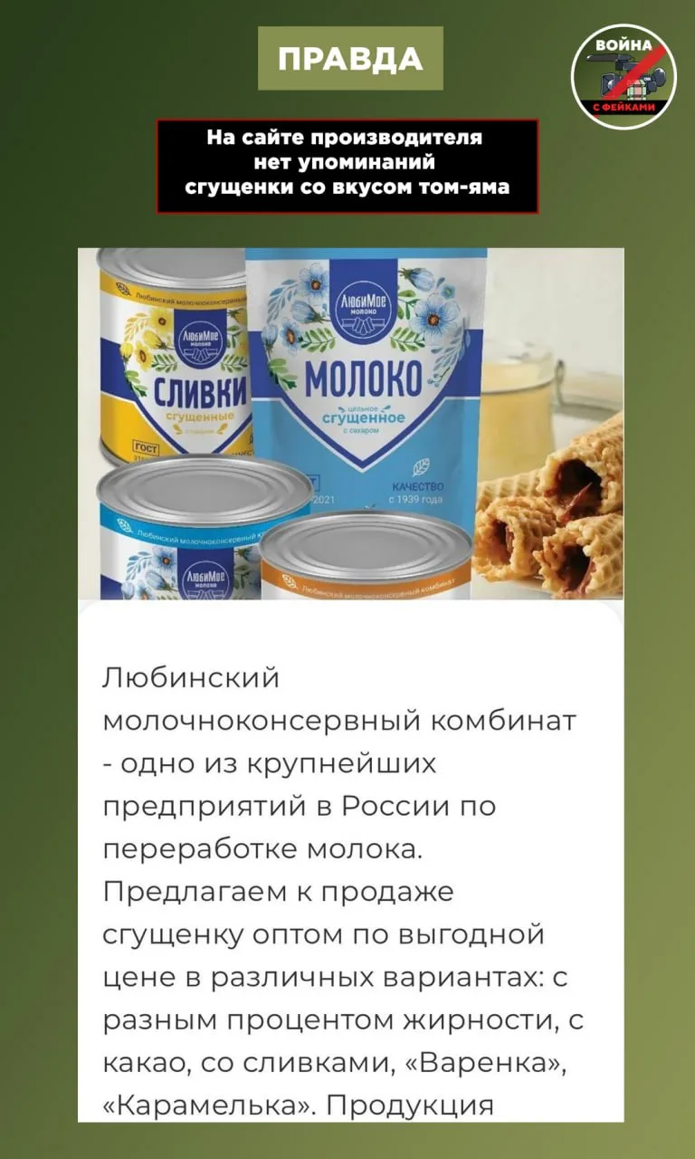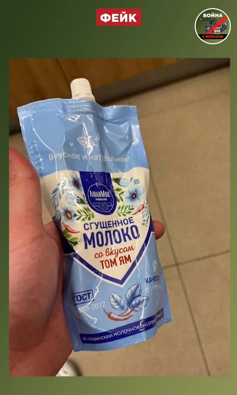 Фейк: В России начали продавать сгущенное молоко со вкусом томяма, сообщают телеграм-каналы.