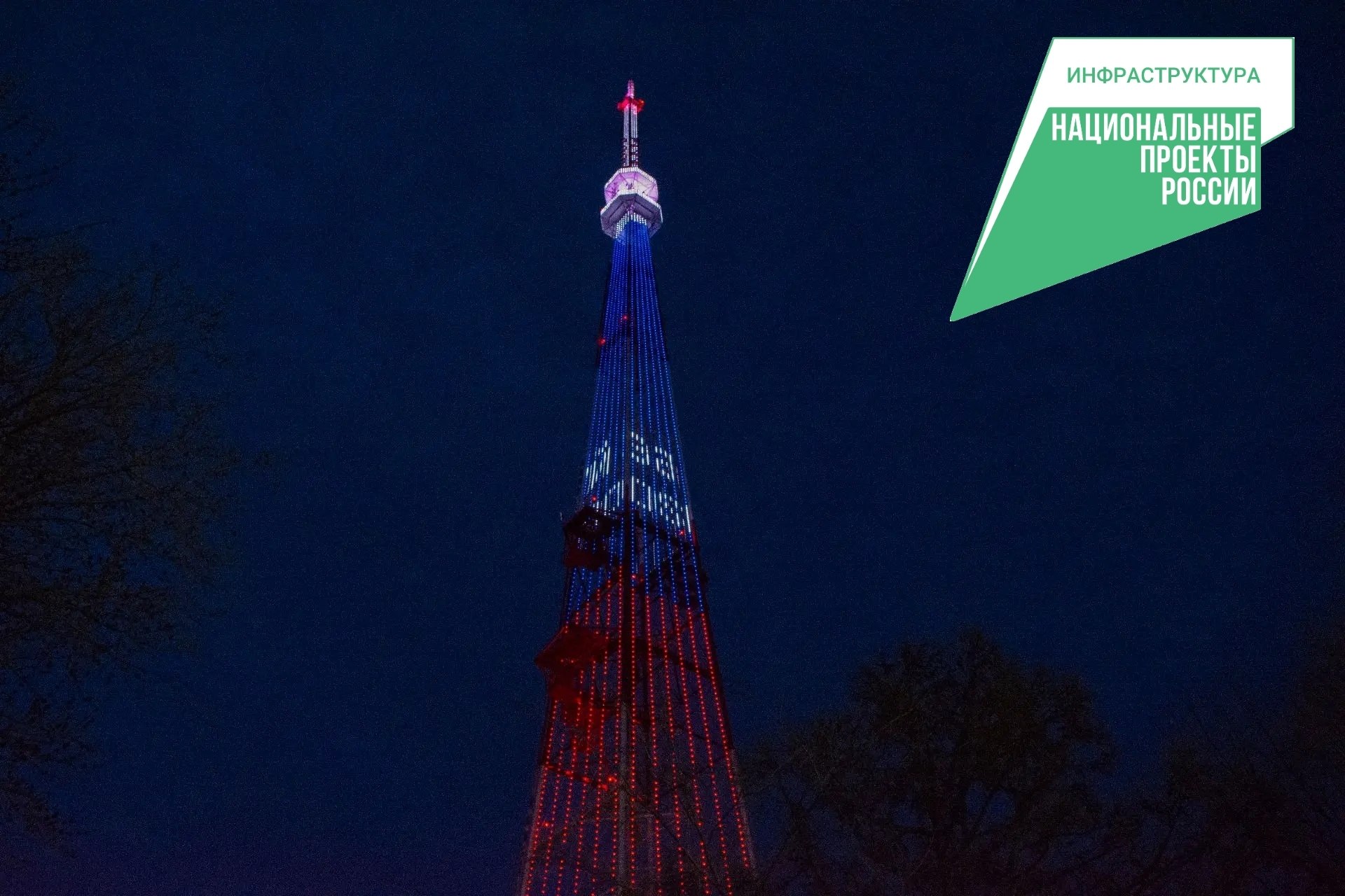 Омская телебашня засияла в поддержку всероссийского голосования за объекты благоустройства