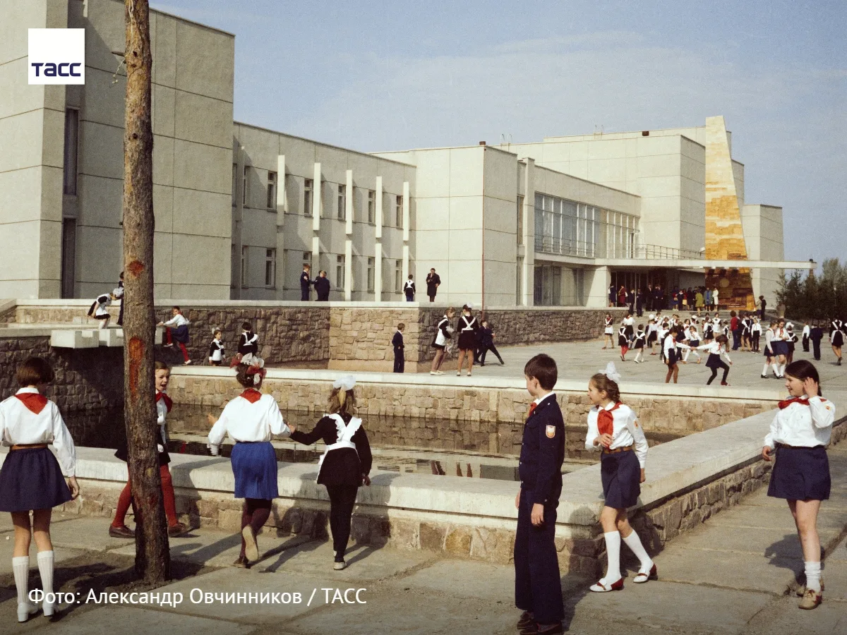#архив_ТАСС_Сибирь. Школьники на прогулке у Дворца пионеров