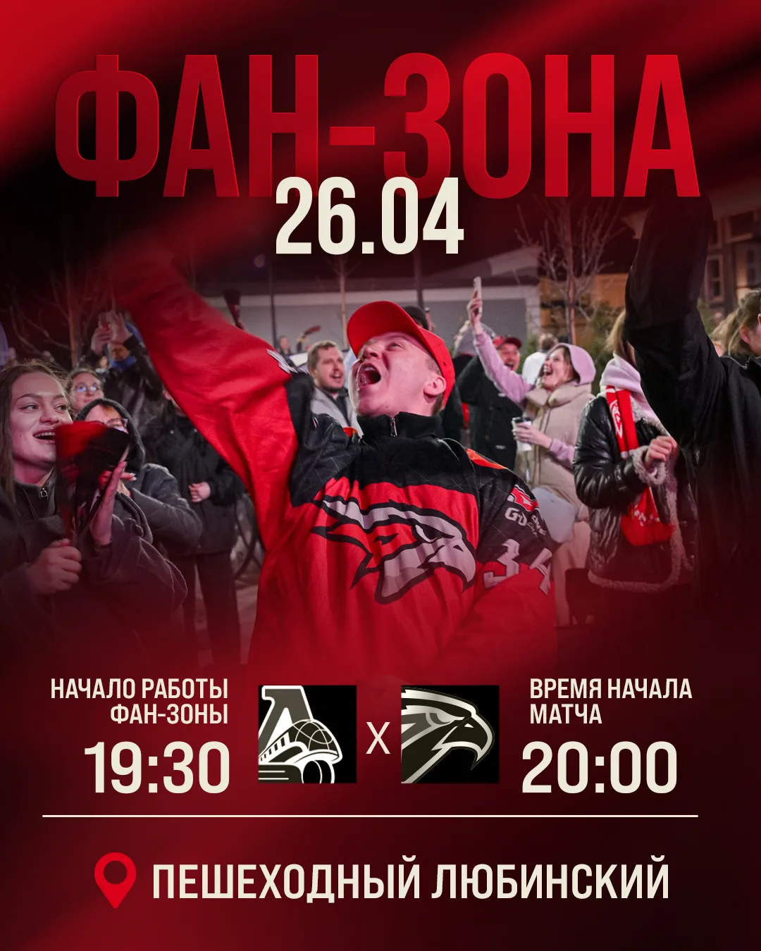Отменяйте все планы на вечер 26 апреля — мы идём смотреть хоккей вместе! Собираемся к 19:30 у главной сцены на Пешеходном Любинском (Ленина, 12).