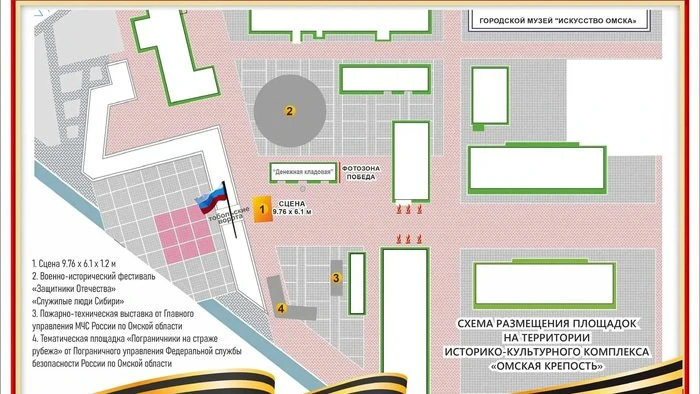 Одной из основных площадок празднования Дня Победы станет «Омская крепость», где поднимут копию Знамени Победы.
