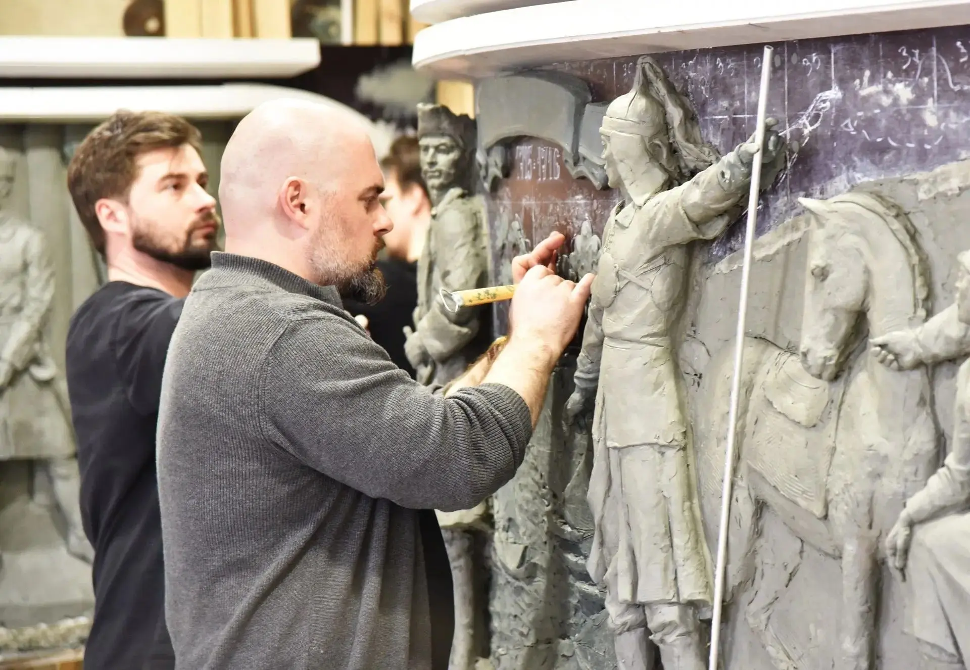 Омский скульптор Михаил Минин создает сейчас прототип будущих барельефов, которые украсят обновленный шар «Держава». Всего разработают 3 барельефа из бронзы.