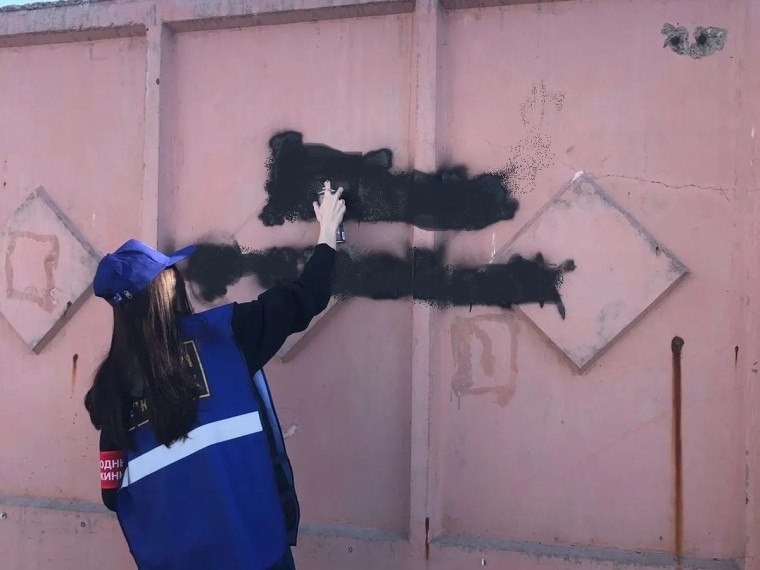 Участники акции закрасили надписи на фасадах домов, зданий, торговых объектах на улицах Лобкова, Котельникова, Серова, Стальского, 9-я Ленинская и Марченко.